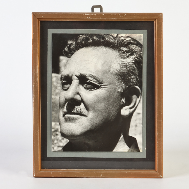 Fotografía en blanco y negro que muestra un retrato en primer plano, centrado en el rostro de una persona. Se encuentra enmarcado en marco de madera.