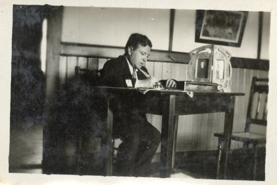 Leonardo Pizarro, escribiendo sobre un escritorio