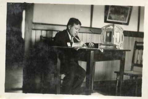 Título: | Leonardo Pizarro, escribiendo sobre un escritorio |