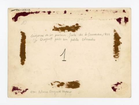 Fiesta de la primavera, comparsa de los pintores, 1927 (Sr. Droguett pintor con paleta coloreado). Don Patricio Droguett. (Tiene un 1 en el centro)