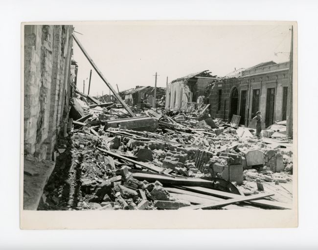 Imágenes de los daños causados por el terremoto de Chillán del 24 de enero de 1939, en la ciudad de Chillán. Con epicentro en la comuna de Quirihue, tuvo una magnitud estimada entre 7,8 y 8,3 grados, y fallecieron entre veinticuatro mil y treinta mil personas.