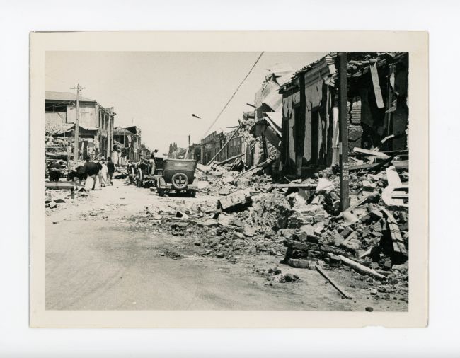Imágenes de los daños causados por el terremoto de Chillán del 24 de enero de 1939, en la ciudad de Chillán. Con epicentro en la comuna de Quirihue, tuvo una magnitud estimada entre 7,8 y 8,3 grados, y fallecieron entre veinticuatro mil y treinta mil personas.