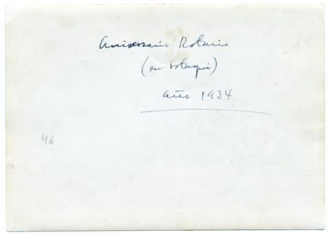 Copia positiva papel de formato rectangular con disposición horizontal e imagen en blanco y negro. Composición en base a retrato grupal masculino en exterior. De fondo vegetación. La imagen se encuentra enmarcada por una franja