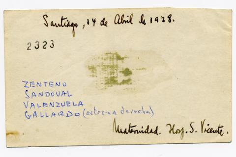 Médicos Zenteno, Sandoval, Valenzuela y Gallardo en la Maternidad del hospital San Vicente de Paul en Santiago el 14 de Abril de 1928.
