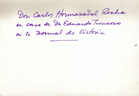 Don Carlos Hormazábal Rocha en casa de don Eduardo Troncoso en la Normal de Victoria.