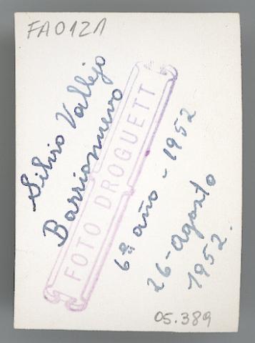 Silvio Vallejo Barrionuevo. 6° año-1952. 26-agosto 1952. Foto Droguett.