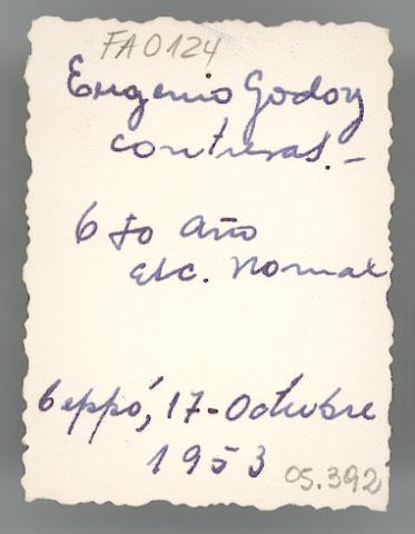 Eugemio Godoy Contreras. 6° año Escuela Normal. Copiapó, 17 - Octubre 1953.