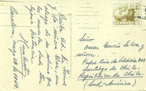 Humberto Barcelona, marzo 24 de 1949 Señor Oscar Garcés Silva y señora Padre Luis de Valdivia 361 Santiago de Chile República de Chile (Sud- América) |