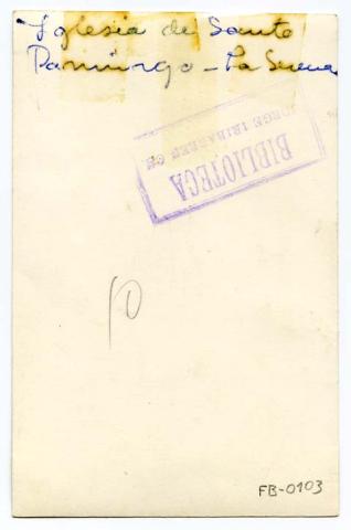Interior de la iglesia de Santo Domingo. La imagen muestra una parte del interior de la iglesia durante una etapa de restauración, se observa algunas vigas, parte del cielo y estructura del techo de la iglesia. Lugar: La Serena (Chile). Materia: Arquitectura y urbanismo. Obras de reforma. Persona o grupo representado: Iglesia de Santo Domingo.