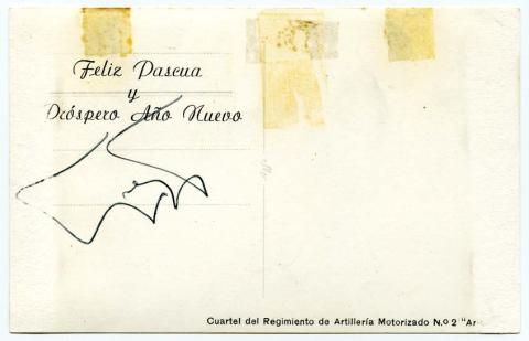 Vista nocturna del edificio del regimiento Arica. Al frente aparece un monumento, Más atrás unos postes y luego el edificio del regimiento completamente iluminado. A la derecha aparece la silueta de un árbol y entre sus ramas se ve la luna. Lugar: La Serena (Chile). Materia: Arquitectura y urbanismo. Edificios. Persona o grupo representado: Regimiento N°2 Arica.
