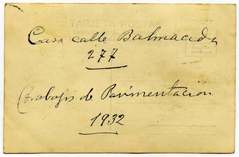 Foto postal en la que se destaca una casa ubicada en calle Balmaceda. Puede verse la calle en proceso de pavimentación. Lugar: La Serena (Chile). Materia: Arquitectura y urbanismo. Calles.