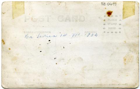 | POST CARD/ CORRESPONDENCE/ ADDRESS/ PLACE STAMP HERE/ AZO. | Reverso |