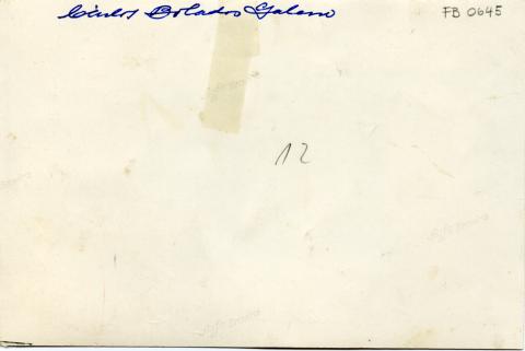 Positivo, monocromo, estructura formal paisaje urbano, especialidad fotográfica registro. Vista parcial de la fachada de un edificio público de un piso. Destaca un torreón al centro de éste. Al costado y abajo se presentan especies arbóreas.