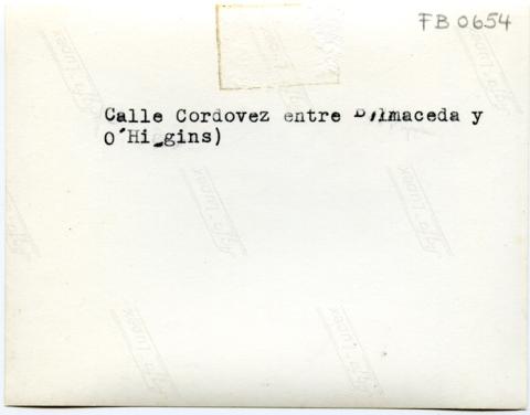 Positivo, monocromo, estructura formal escena, especialidad fotográfica registro. Vista a calle en perspectiva, se alzan a los costados edificaciones. En primer plano un grupo de personas observa a militares desfilando por la calle.