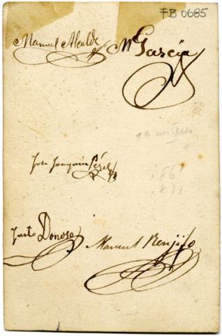 JOSÉ JOAQUÍN PÉREZ; MANUEL ALCALDE; M. GARCÍA; JUSTO DONOSO; MANUEL RENJIFO.
