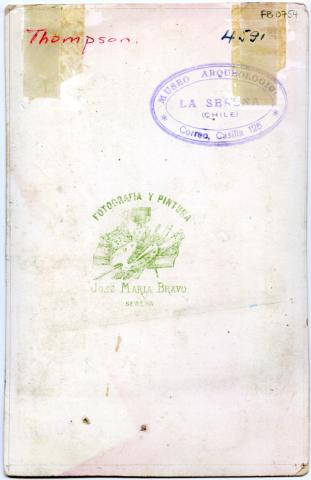 Positivo, monocromo, formato cabinet, estructura formal retrato individual, especialidad fotográfica artística. Retrato en plano americano de un hombre, permanece sentado y levemente en escorzo apoya su brazo izquierdo en un mueble.