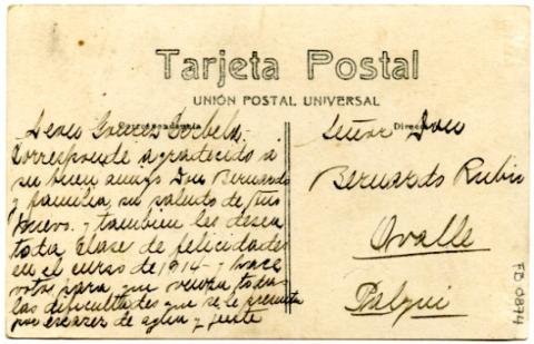 TARJETA POSTAL. UNION POSTAL UNIVERSAL.CORRESPONDENCIA. DIRECCION.