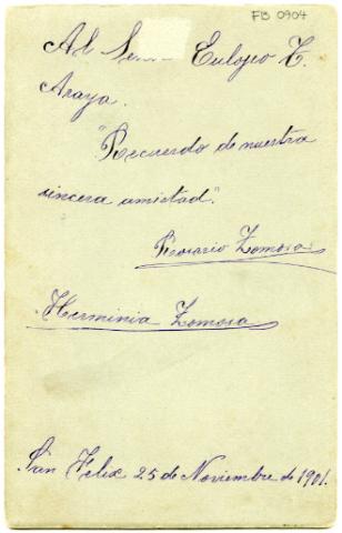 Historia Institucional / Reseña Biográfica: Fechado en san félix 25 de noviembre de 1901