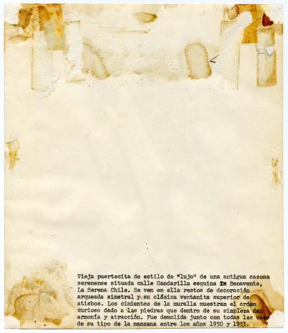 PUERTA DE VIEJA CASONA SERENENSE QUE ESTABA SITUADA EN GANDARILLAS ESQUINA BENAVENTE - DEMOLIDA EN 1950