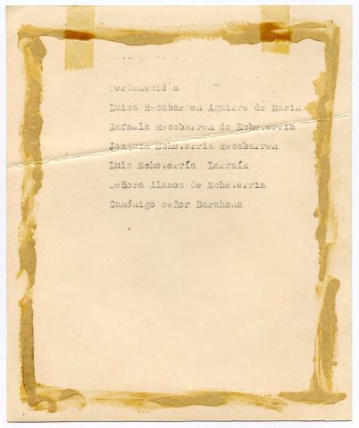 Historia Institucional / Reseña Biográfica: Texto inscrito: perteneció a Luisa Recabarren Aguirre de Marín / Rafaela Recabarren de Echeverría / Joaquín Echeverría Recabarren / Luis Echeverría Larraín / Señora Alamos de Echeverría / Canónigo Señor Barahona.