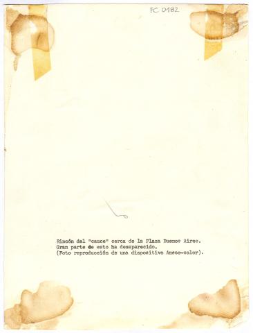 RINCÓN DEL "CAUCE" CERCA DE LA PLAZA BUENOS AIRES. GRAN PARTE DE ESTO HA DESAPARECIDO. (FOTO REPRODUCCIÓN DE UNA DIAPOSITIVA ANSCO-COLOR).