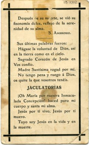 Impreso, monocromo, estructura formal retrato individual, especialidad fotográfica informativa. Documento de orientación vertical, en la mitad superior- centro destaca el retrato en primer plano de un religioso. En la mitad inferior se despliega texto de carácter conmemorativo.