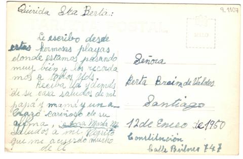 Berta Braim de Valdes Santiago 12 de Enero de 1950 Constitución Calle Búlnes 747 |