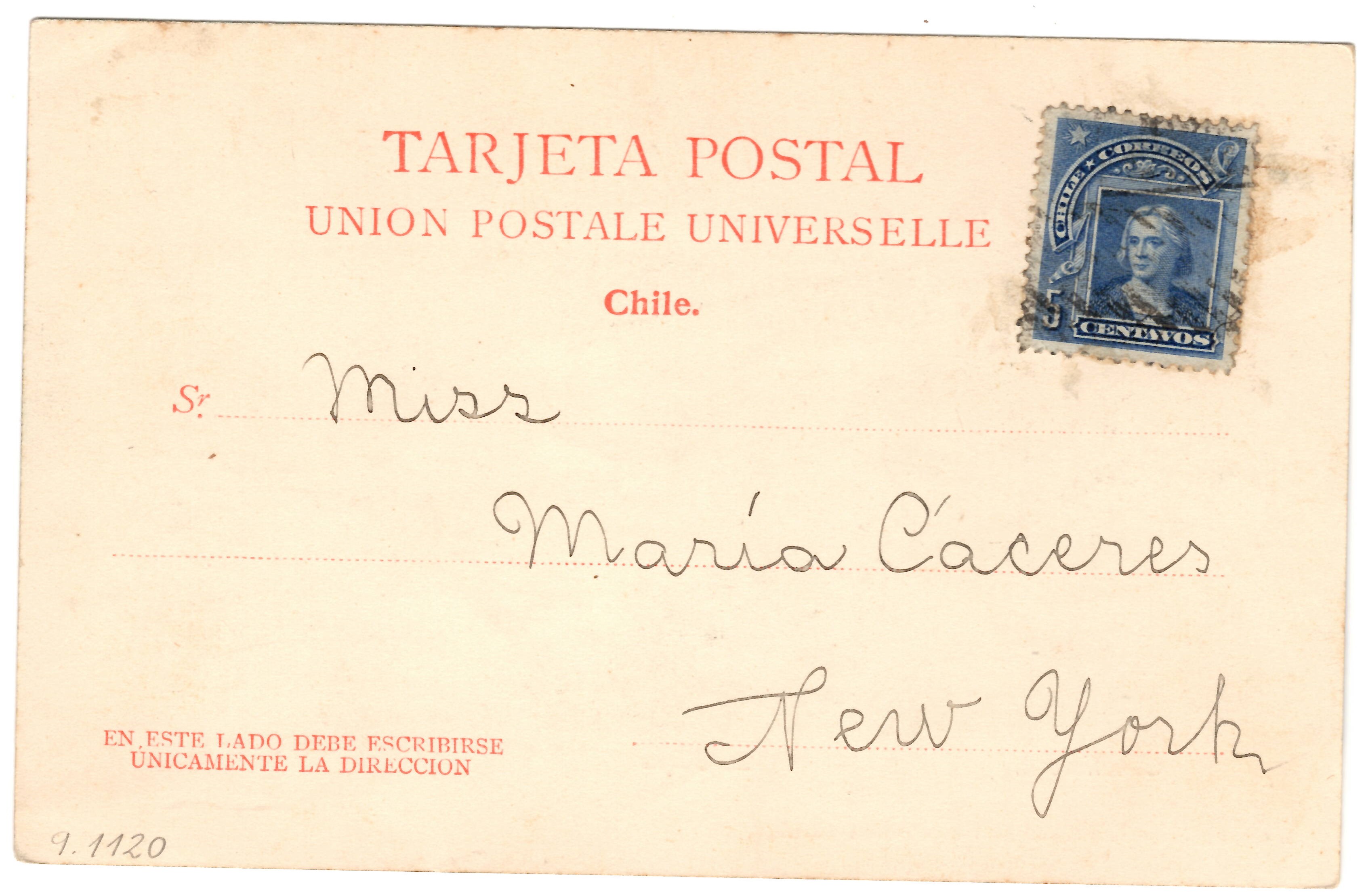 UNION POSTALE UNIVERSELLE Chile. Sr. EN ESTE LADO DEBE ESCRIBIRSE UNICAMENTE LA DIRECCION |
